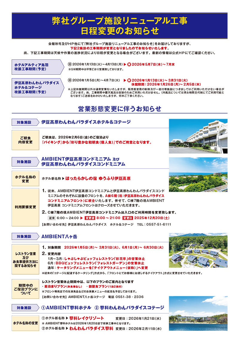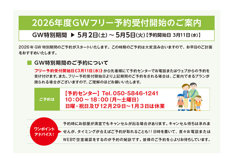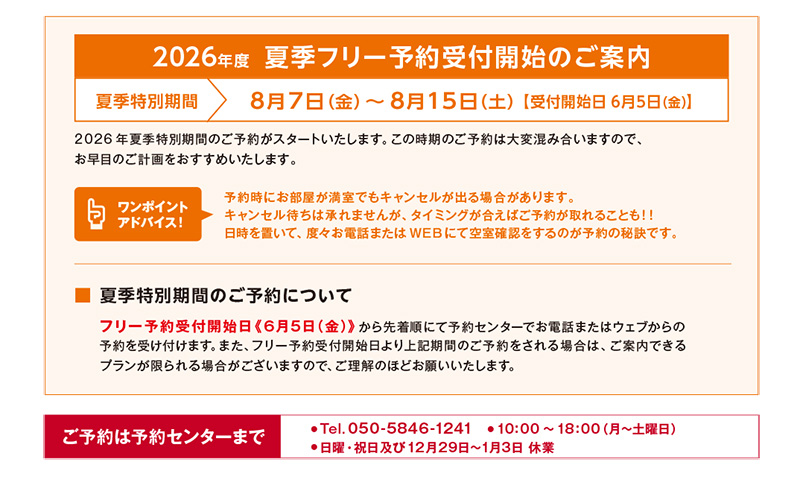 リゾートホテルのご予約先 クラブメッツ予約センター 050-5846-1241