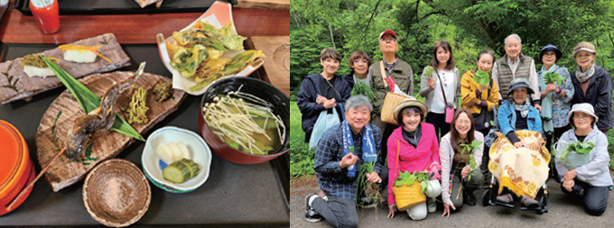 春は山菜採り、秋はキノコの収穫と、毎回季節の節目に旬の味覚を味わうべく楽しみにお集まり下さった「クレソンの会」も第70回を迎え、始まりの地である清里にて会の歴史を閉じることとなりました。今回も山岳ガイドの案内で大自然の中を散策しながら蕨、ウド、野蒜、コゴミ、ノカンゾウ、水ワサビ等様々な山菜を収穫、ランチタイムでは、山菜寿司をはじめヤマメ料理を頂きながら懐かしい思いで話に花を咲かせ、今後はサークル活動での再会を固く約束してお開きとなりました。