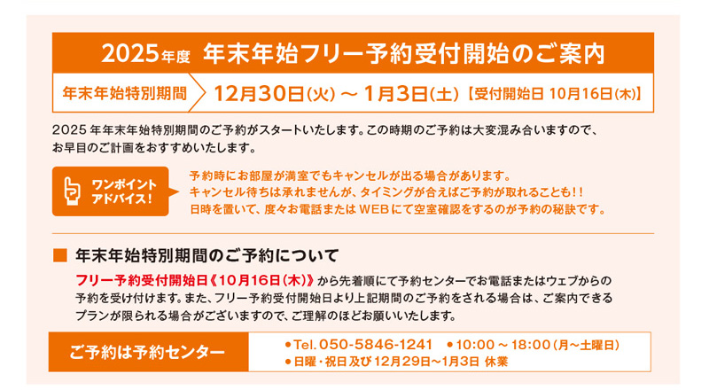 リゾートホテルのご予約先 クラブメッツ予約センター 050-5846-1241